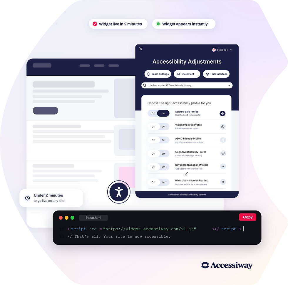 Improve usability and inclusivity with the Accessiway widget - a smart solution designed to adapt to every visitor.